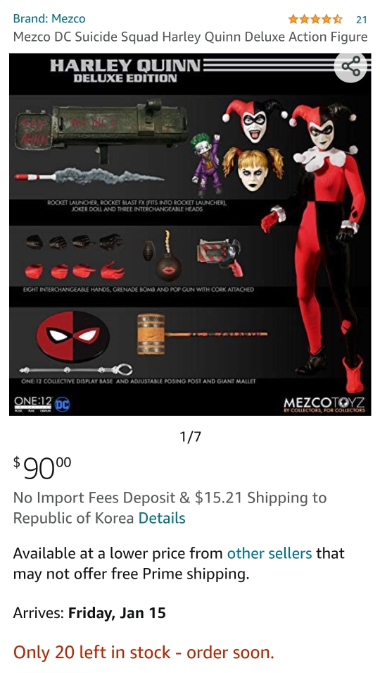 메즈코 인기 제품들은 바로 팔리고 아마존에서도 금액이 바로 오르기 때문에 무조건 좋아하는 상품이 뜬다면 미리 미리 주문을 해야합니다. 그런면에서 할리퀸 광대버전은 확실히 인기가 없는듯 하네요..ㅎ