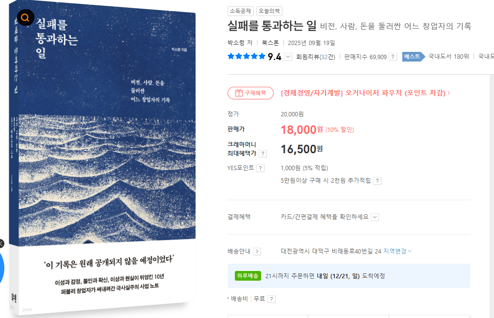 우연찮게 유튜브 보다가 추천하는 책을 말하길래 바로 주문. 책 주문은 수십 수백만원을 써도 안아깝다!! 저자인 박소령 작가는 10년 동안 개인 사업하면서 일어난 일들을 작성 했다고 함.